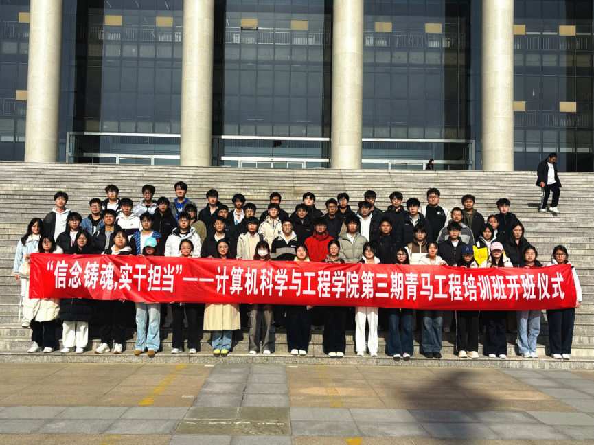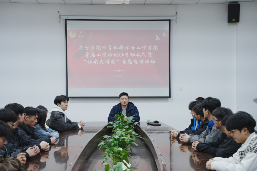 2025年11月21日晚,计算机科学与工程学院2025-2026学年“青年马克思主义者培养工程”大学生骨干培训班开班仪式暨第一期培训在学院楼A116会议室隆重举行。本次仪式由学院团委副书记李德法主持,学院全体学生骨干参加。
