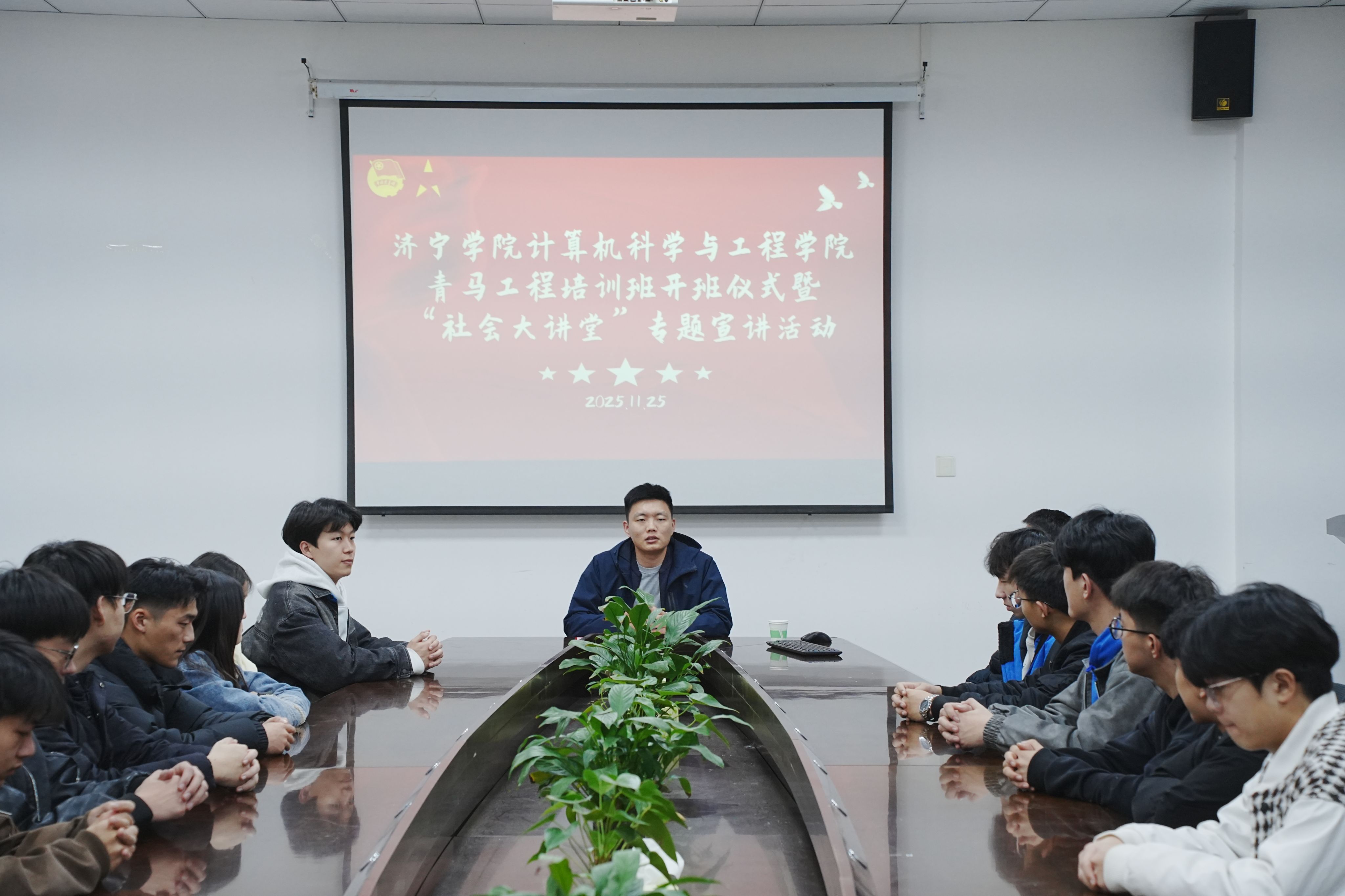 为深入贯彻落实国家关于推动青年人才服务基层的战略部署,11月25日计算机科学与工程学院在8A116举办“社会大讲堂”活动。本次活动由学院团委副书记李德法主持,特邀曲阜市鲁城街道青年干部吴雨龙担任主讲,学院青马工程学员及学生代表参加。