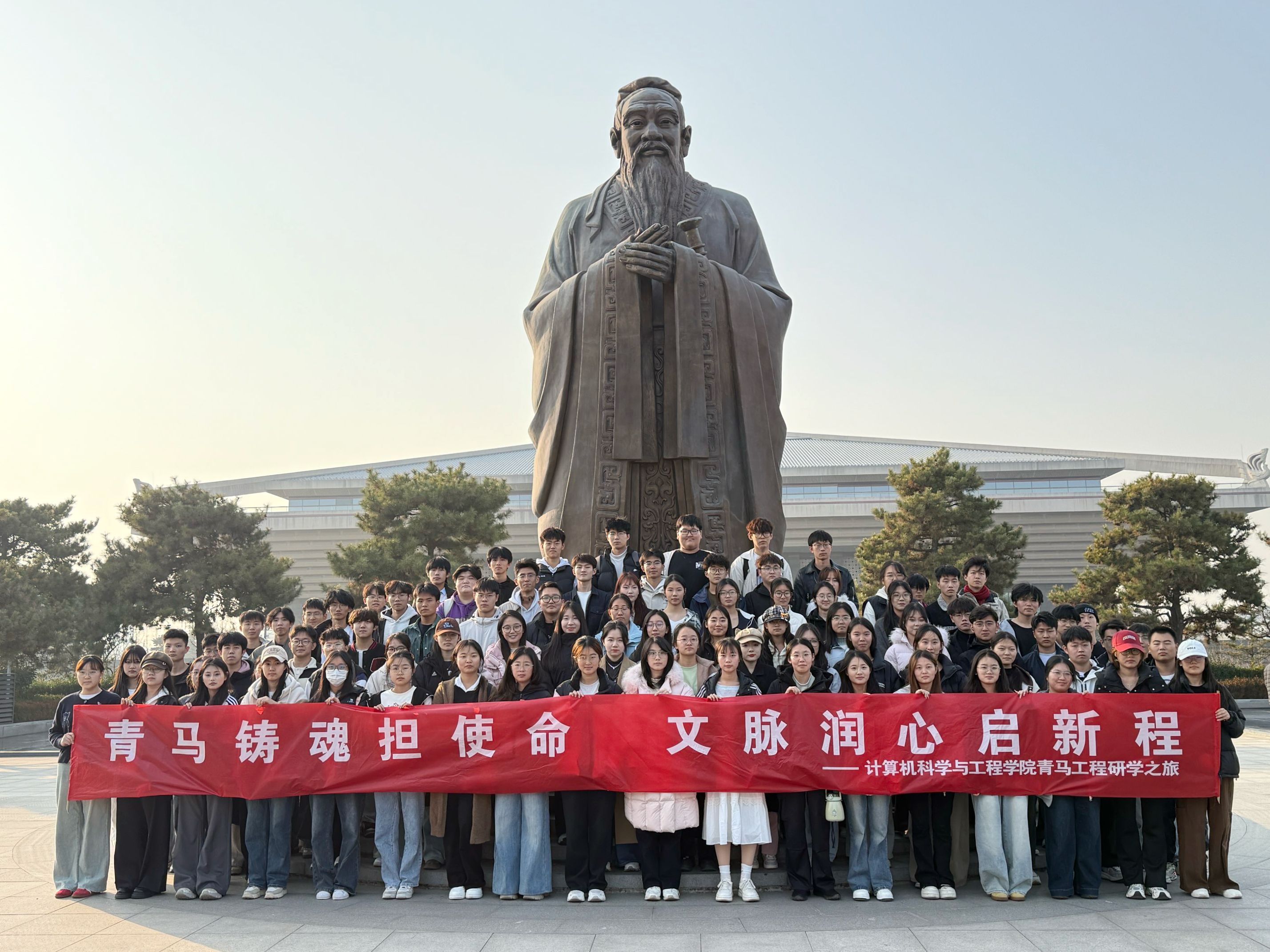 为深入学习贯彻习近平新时代中国特色社会主义思想,深化“青年马克思主义者培养工程”(简称“青马工程”)建设,引导青年学生传承中华优秀传统文化、筑牢使命担当,11月30日下午,计算机科学与工程学院组织第三期“青马工程”培训班全体学员,前往孔子博物馆开展“文化寻根”主题研学实践活动。