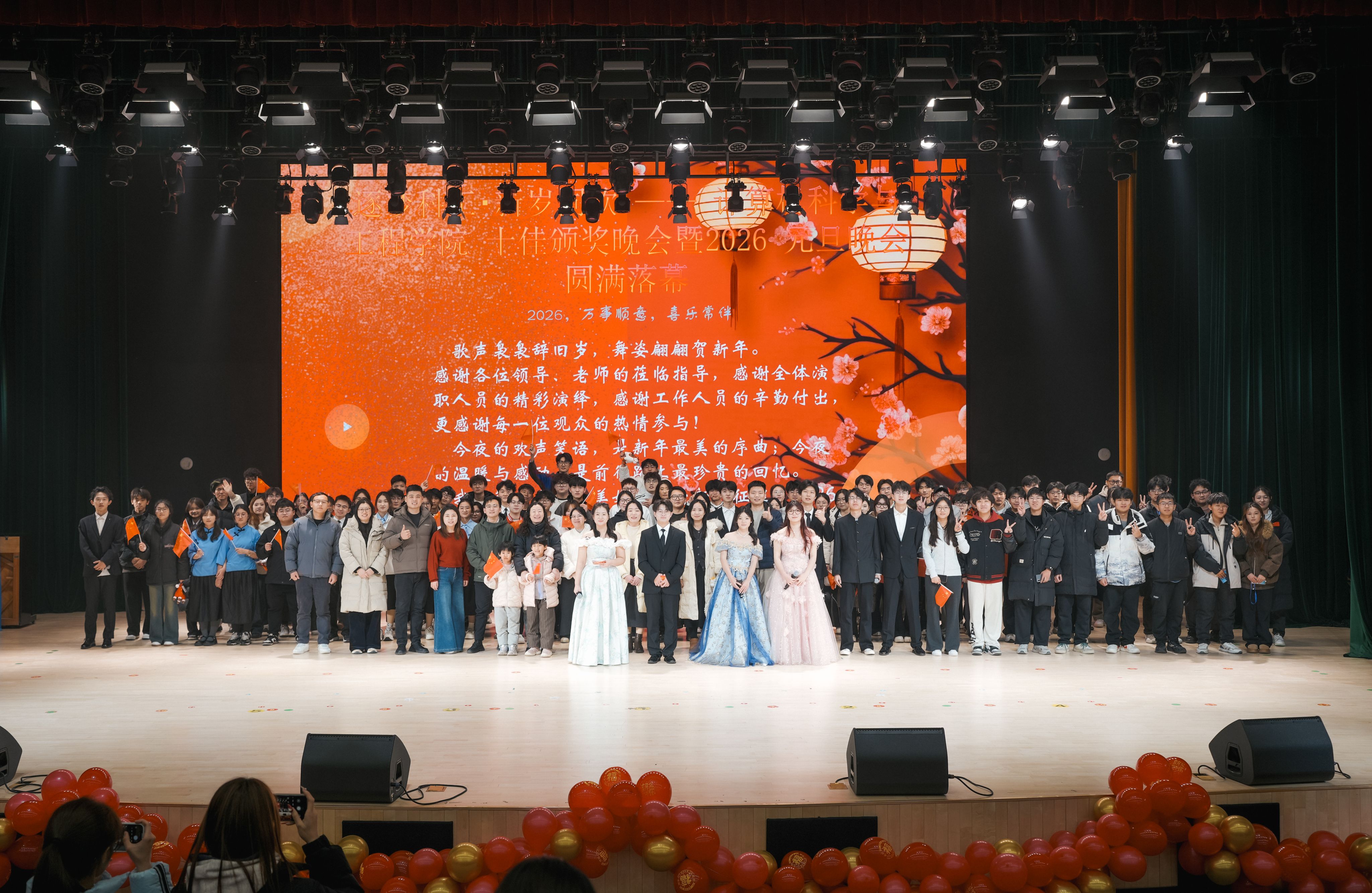 最后,晚会在全体演员合唱《我爱你中国》的动人歌声中圆满落幕。本次活动生动展现了学院学子多才多艺、全面发展的精神风貌,也进一步营造了积极向上、团结奋进的校园文化氛围。计算机科学与工程学院将继续坚持以文化人、以美育人,引导学生在坚定文化自信中成长成才,在推进中国式现代化的青春赛道上奋力奔跑。
