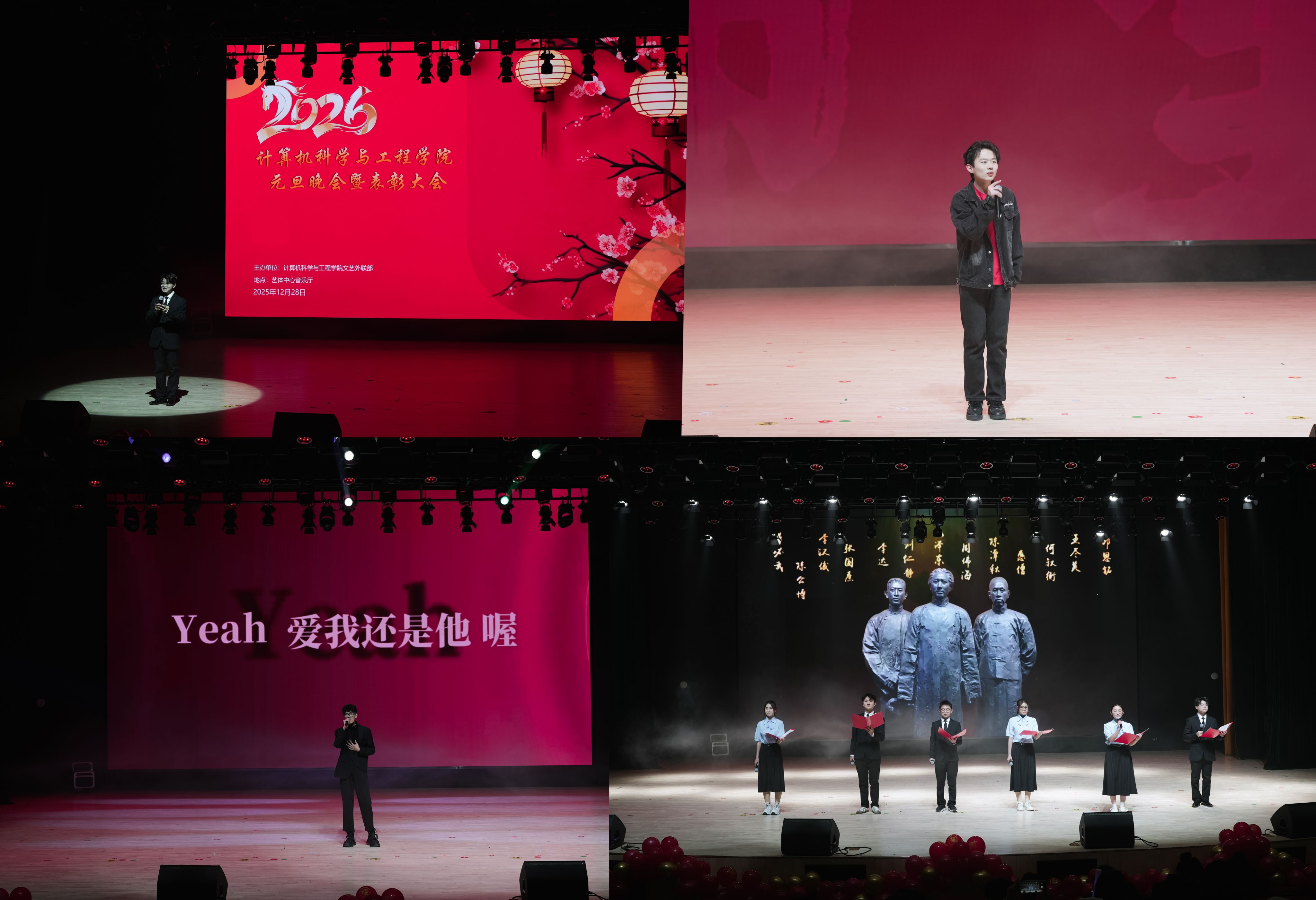 为深化五育融合,弘扬奋斗精神,表彰先进典型,12月28日晚计算机科学与工程学院在艺体中心音乐厅成功举办元旦晚会暨年度表彰大会。学院党政领导、全体辅导员与近400名学生齐聚一堂,喜迎新年。
