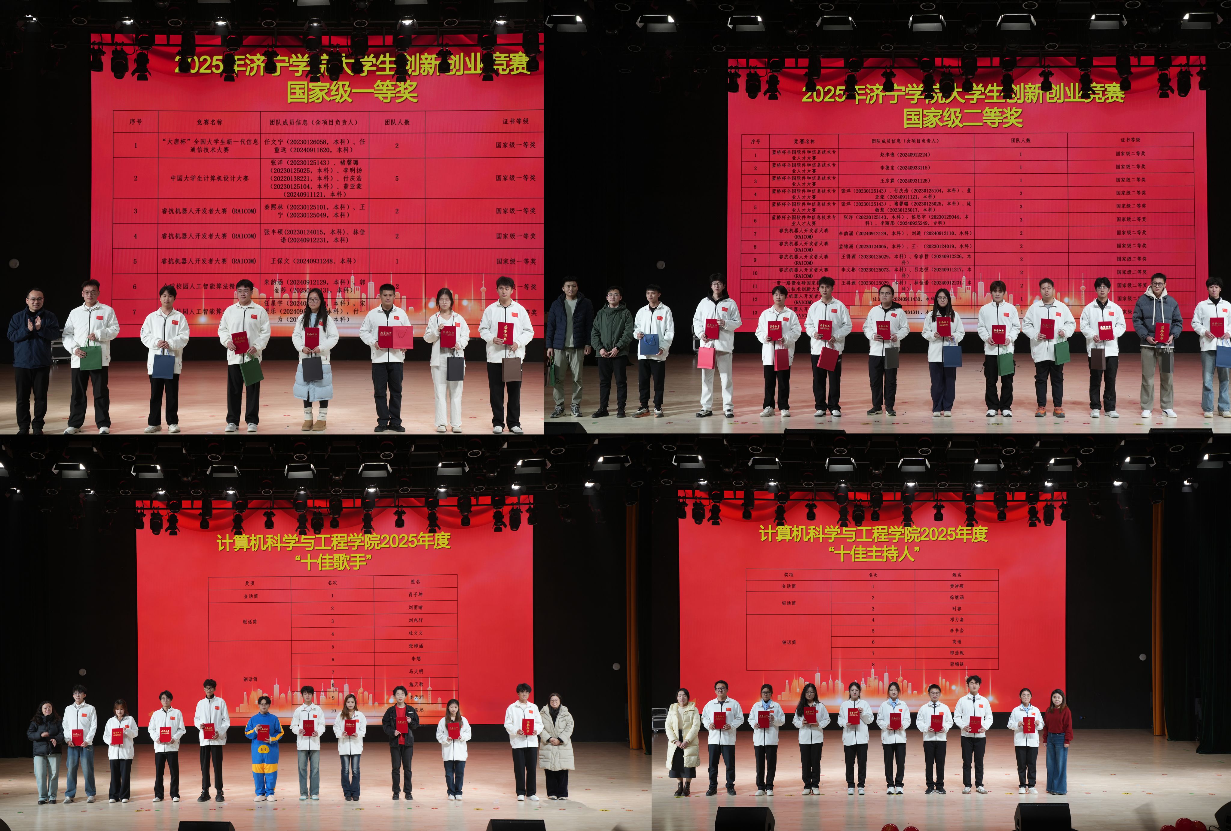 表彰环节贯穿晚会始终。“学习之星”“创新之星”“十佳歌手”“十佳主持人”等获奖个人与团队依次上台接受荣誉。他们以优异的学业表现、突出的实践成果和全面的综合素养,树立起鲜明榜样,凝聚起全院学子见贤思齐、争先创优的向上力量。