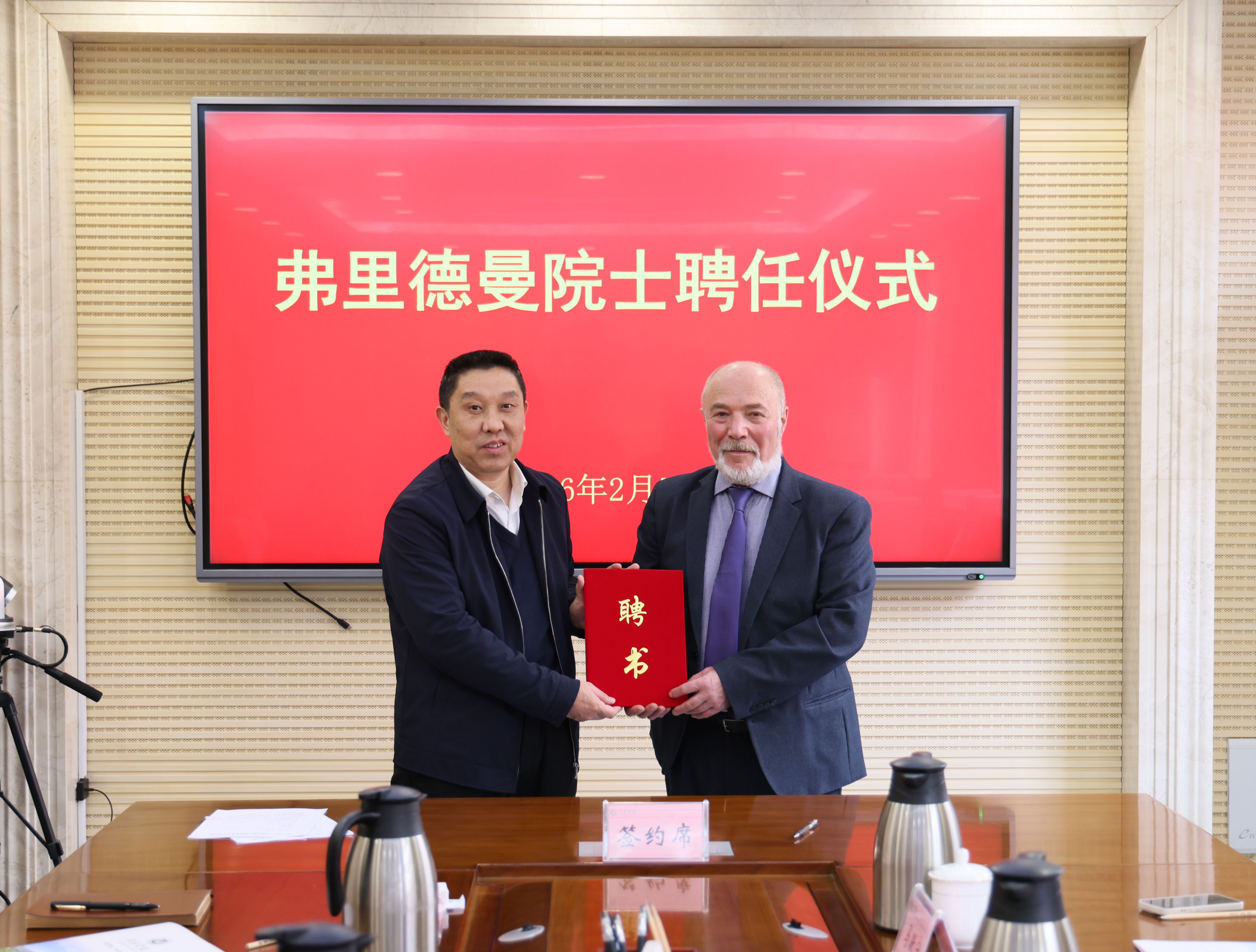 2月5日,济宁学院在行政楼A316会议室举行高层次人才引进签约仪式,聘任俄罗斯自然科学院院士弗里德曼·亚历山大·雅科夫列维奇(Fridman Aleksandr Yakovlevich)为济宁学院(浪潮)新一代信息技术产业学院名誉院长。