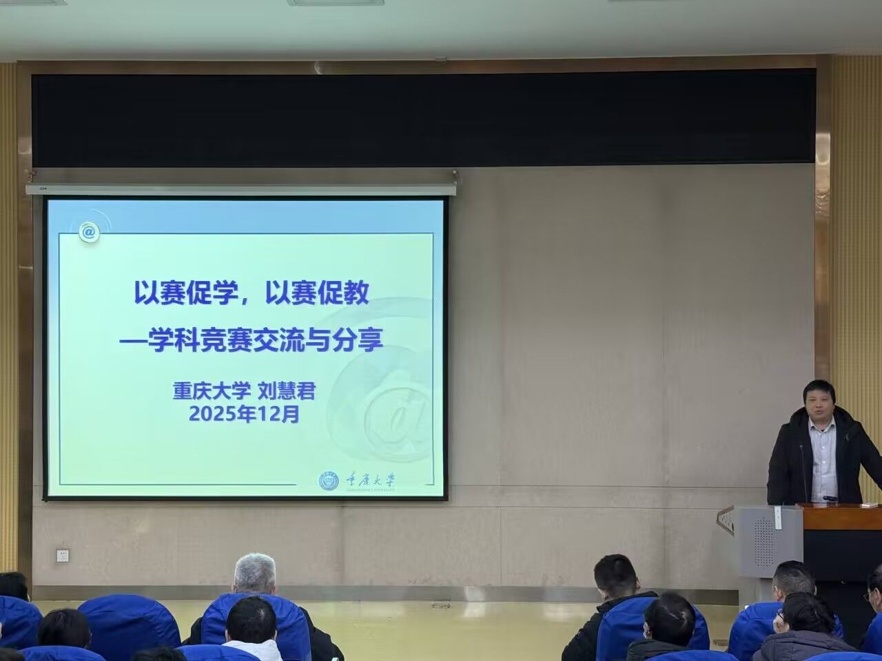 为深化竞赛与教学融合,提升创新人才培养实效,12月10日下午计算机科学与工程学院特邀重庆大学刘慧君教授作题为“创新实践能力的学科竞赛教学模式探索”专题报告。学院院长李鹏、副院长翟鹏、团委副书记李德法出席活动,相关学科带头人、骨干教师及学生代表参加。